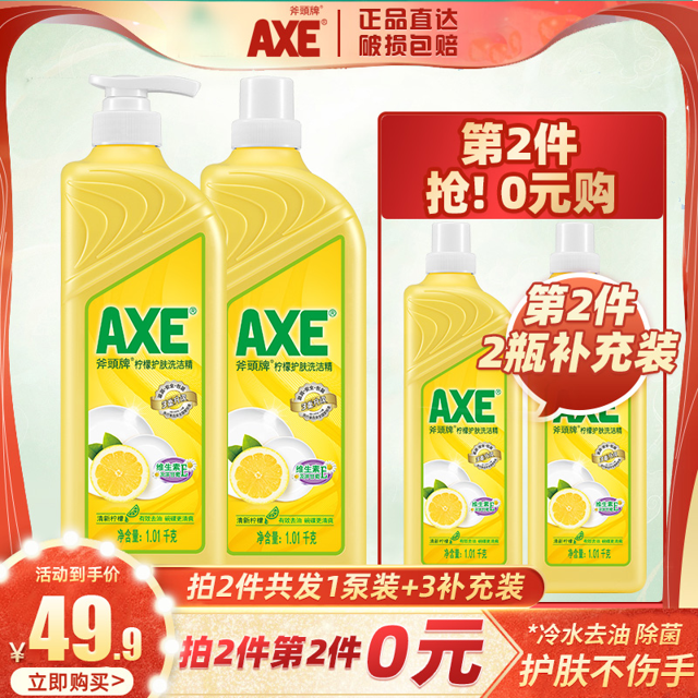天猫axe斧头牌一二三专卖店59.9元,满119元减59.9元活动,下单2件可领20元优惠券,实付39.9元到手,规格是1.18kg*4瓶,官方直供,破损包赔。