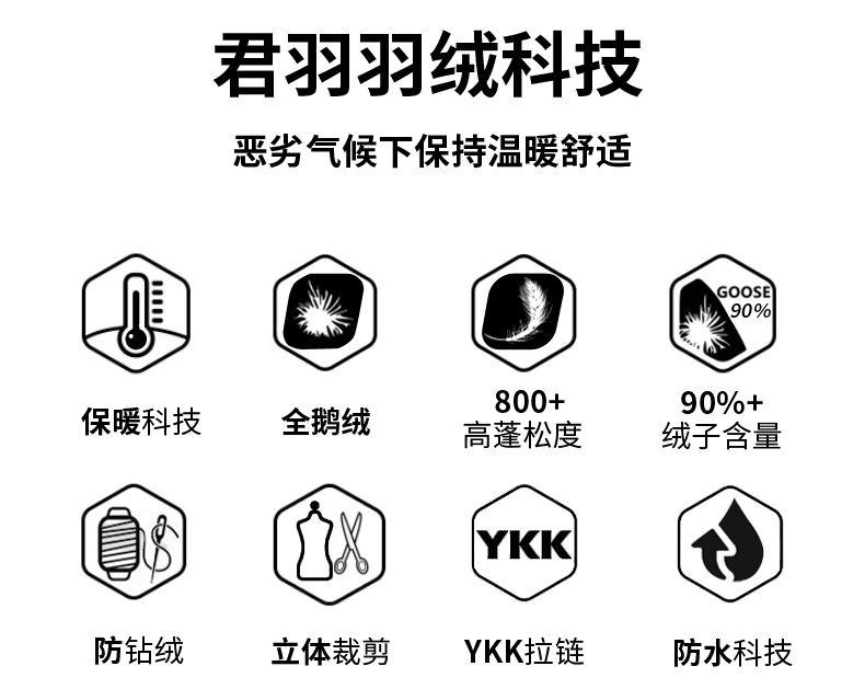 「鹅绒」800蓬鹅绒成本约是普通鸭绒的10倍,没有鸭毛的腥味,保暖效果更好;「210克 800蓬鹅绒」≈「272克 700蓬普通鹅绒」≈「388克普通鸭绒」。