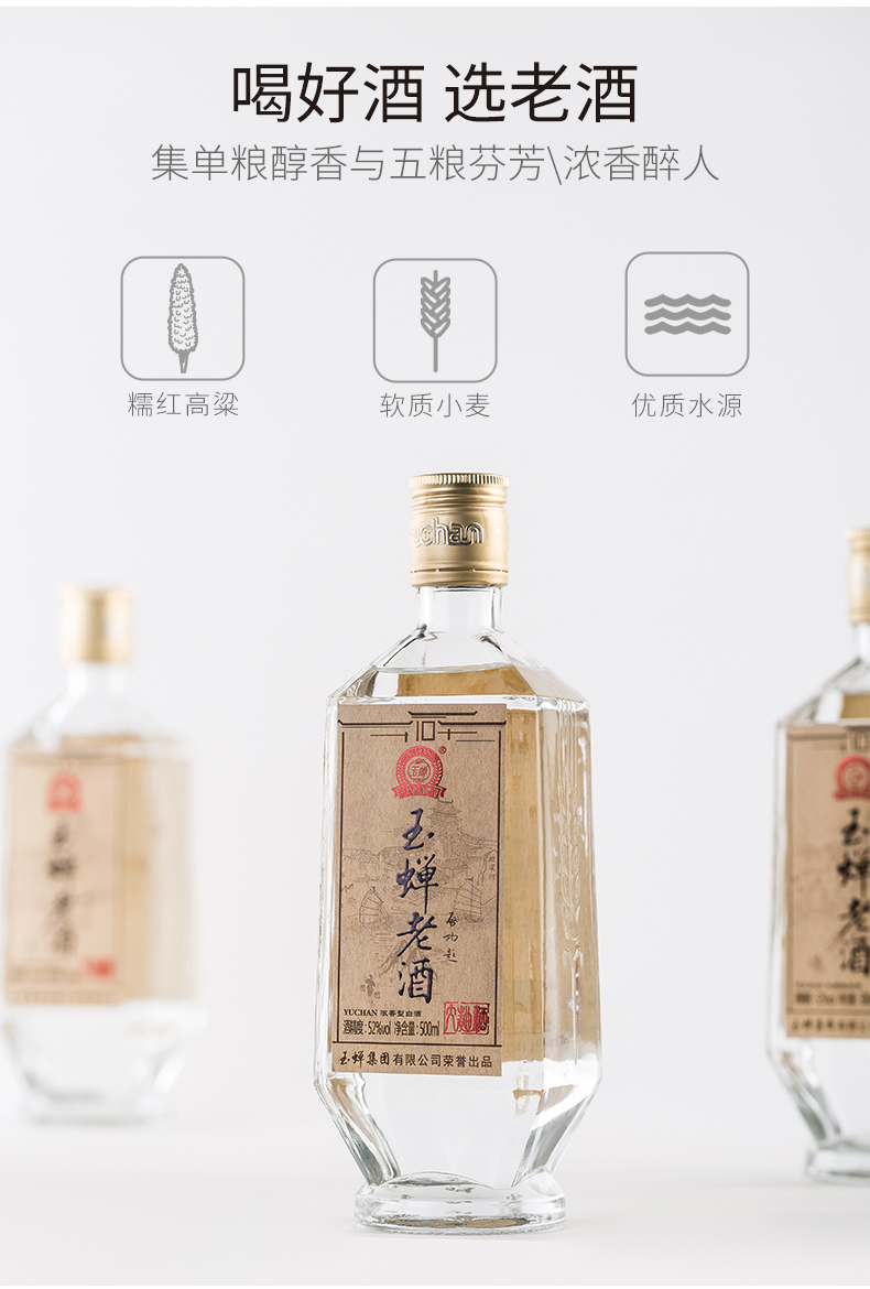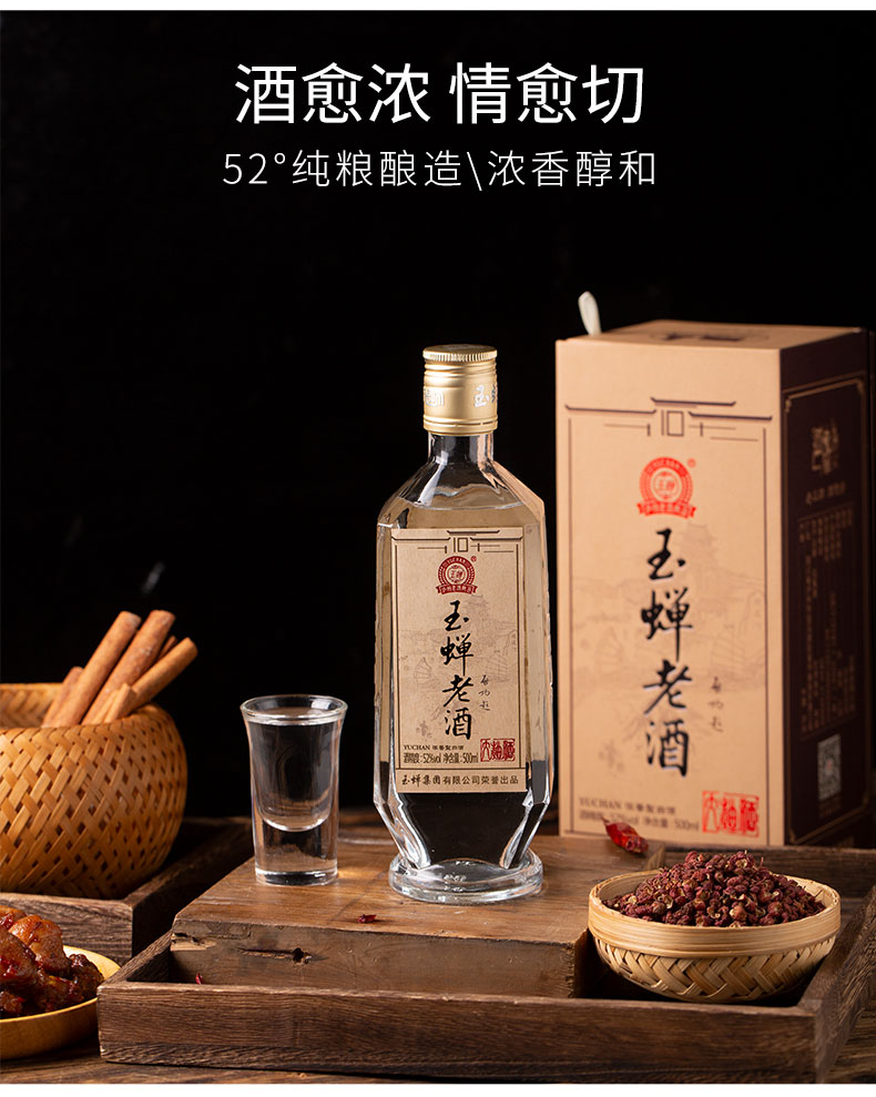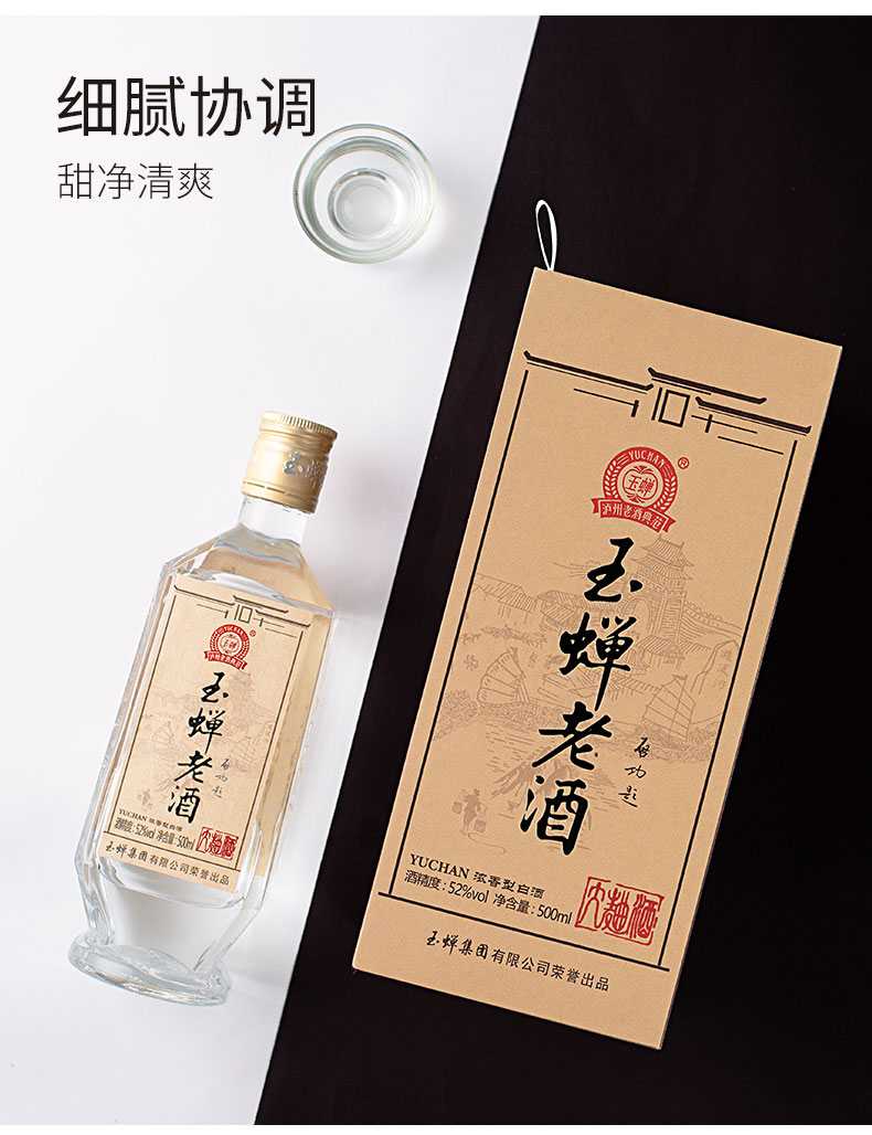 这款泸州玉蝉老酒·大曲怀旧版,是一款52度浓香型白酒,采用特选的红高粱和“筋质丰富、支链淀粉高”的优质小麦为原料的纯粮食酒,酒质清澈,浓香醇和,酒花丰富,入口醇厚、甜净清爽。