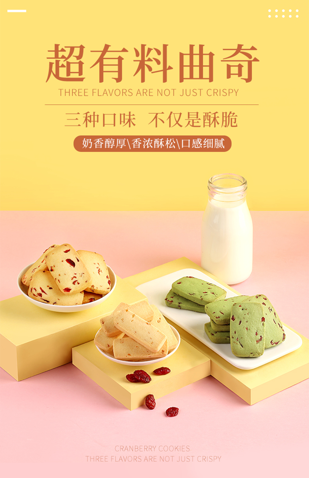 采用进口优质原材料,口感细腻,香酥味美、奶香浓厚,独立小包装,方便分享,给你不一样的味蕾体验~