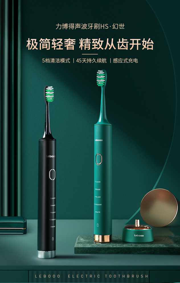 这款力博得声波电动牙刷,华丽的外观质感,颜值在线,32000次/分钟高频振动,强效清洁,具有清洁、敏感、抛光、按摩、美白5档清洁模式,2分钟智能定时,每30秒振动瞬停,提醒更换清洁区域,均衡清洁口腔四个区域,以达到科学的清洁效果。