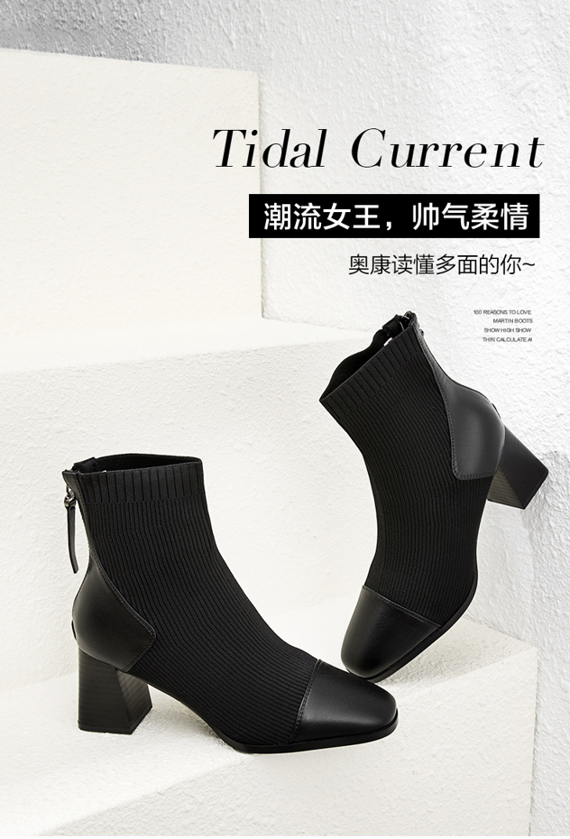 这款采用PU+飞织袜靴设计的靴筒,既舒适透气又能勾勒出腿部线条,防滑橡胶大底,柔软舒适合脚,轻松占据C位,时尚百搭。