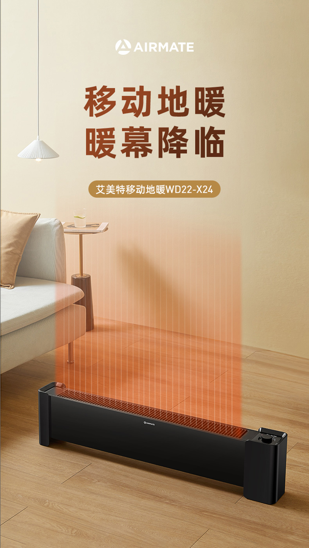 艾美特出品的移动式地暖,从下往上热气流立体循环,2200w超大热量,整屋升温。新型合金发热体,无光无声无风感,升温不干燥,113片大热量,3s速热 。具备安全童锁、倾倒自动断电、过热保护等安全防护。