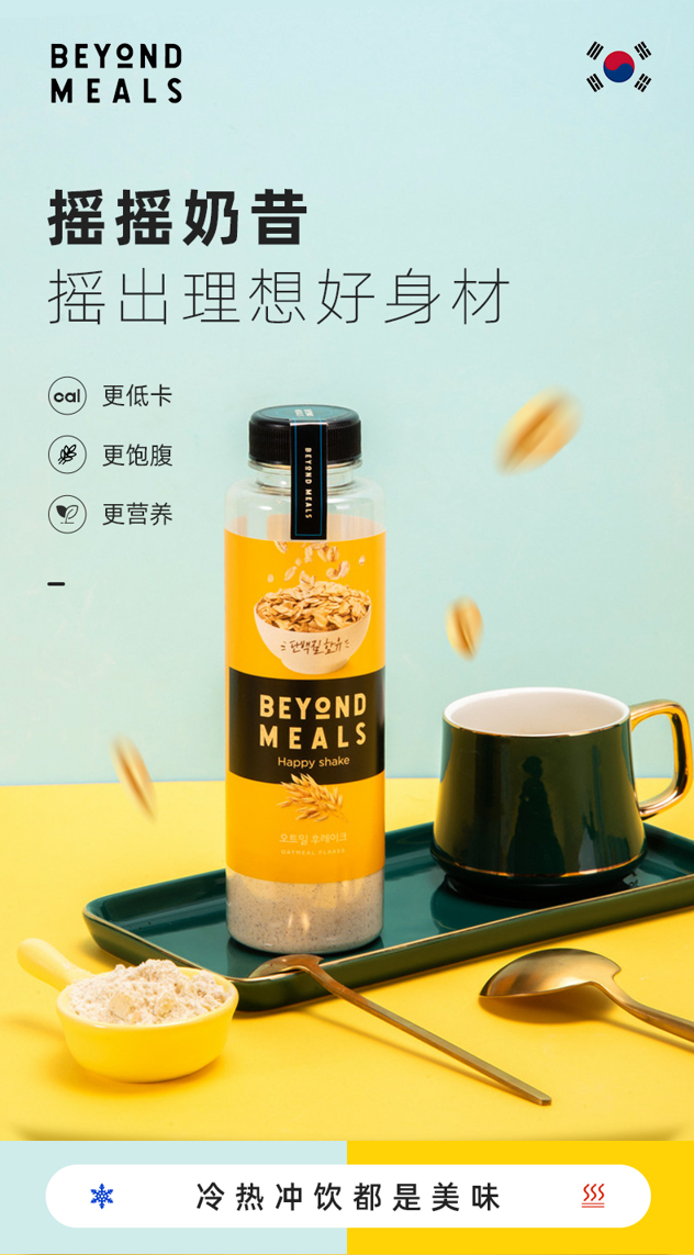 这款Beyond Meals 代餐奶昔,韩国原装进口,甄选优质进口原材料:德国乳清蛋白、新西兰脱脂奶粉、罗马尼亚抗性糊精、德国菊粉制成,富含30多种维生素+矿物质,每瓶不到260大卡,奶茶口味喝不腻,1瓶1餐,可帮你节省1小时运动量。使用方法:可冷水冲泡,直接往瓶中加水至水位线(约200mL),充分摇匀后饮用。