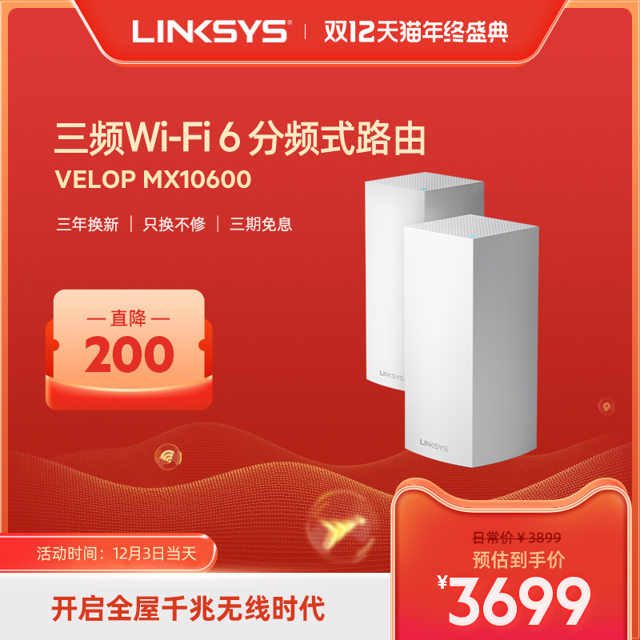 天猫linksys旗舰店目前满减到手价3059元,近期好价,感兴趣的买买可以入手。