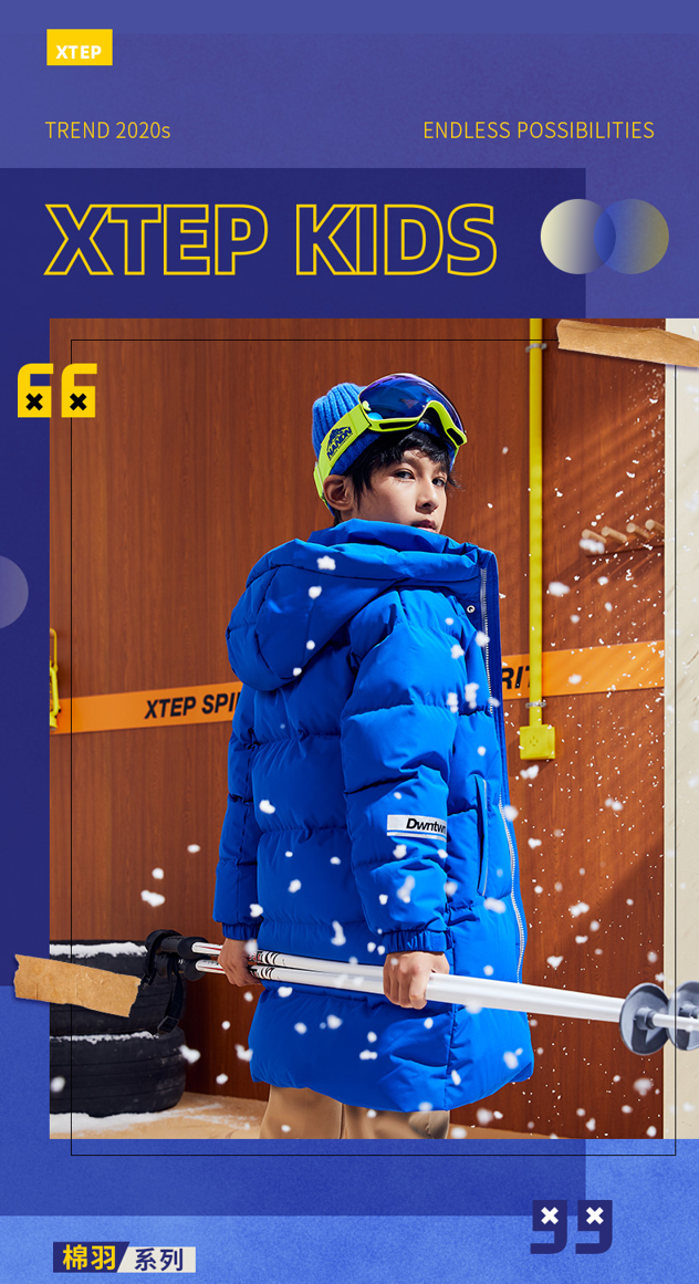 这款特步男童中长款连帽羽绒服,2020秋冬新款,外层是100%聚酯纤维面料,防风防雨耐磨,同时易清洗好打理。内里填充80%灰鸭绒,隔仓填充,保证充绒均匀,不会因为窜绒影响保暖效果。