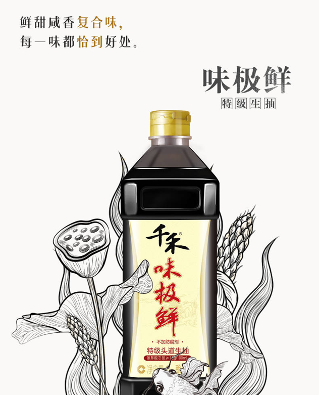 这款千禾 味极鲜 特级头道生抽酱油 ,规格:1L,采用黑龙江非转基因脱脂大豆,水源来自岷山雪域高原之水,38道工序,180天双重低温发酵,封罐秘制,只榨取第一道头初精华,氨基酸态氮≥1.2g/100ml,零添加更健康,是不加味精的本味鲜。
