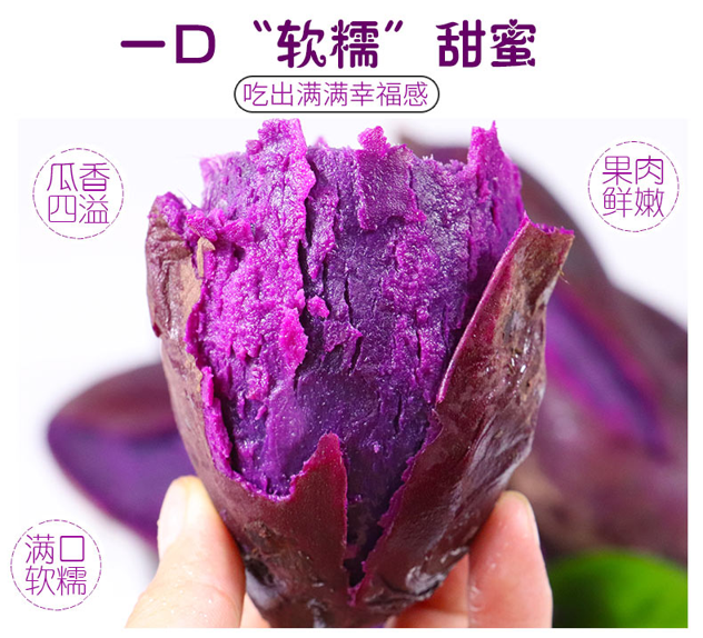 紫薯是一样比较健康的食物,肉质软糯香甜,适合烤,煮,蒸,营养丰富,有着很好的蛋白质,高山种植,外形美观,皮薄肉厚细腻,能蒸能煮,做法多样,香甜软糯,营养丰富自带甜味。