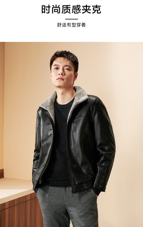 这款海澜之家夹克,外层是聚氨酯材料,也就是PU,面料经过涂层工艺处理,手感柔软富有光泽,搭配内里加绒设计,抗风又保暖。外层皮衣与毛绒内胆可拆卸,适合春秋冬三季穿着,内胆也可直接当做毛绒马甲,一衣多穿。
