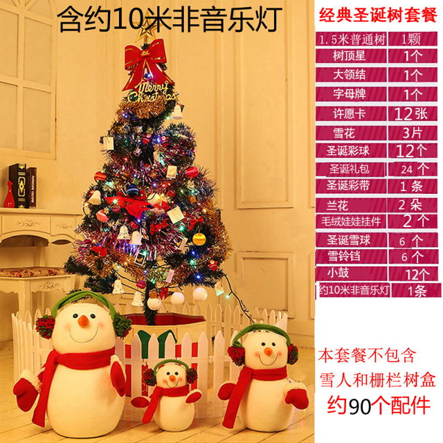配有90个配件:1个树顶星、1个大领结、1个字母牌、12张许愿卡、3片雪花、12个圣诞彩球、24个圣诞礼包、6个圣诞雪球、1条圣诞彩带、2朵兰花、6个雪铃铛、3个松果、12个小鼓和1条10米的非音乐彩带。