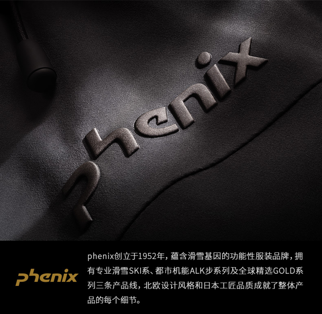 经过六十多年的发展,Phenix成为拥有滑雪基因的高端功能性服装品牌,包括:Ski滑雪(专业,顶级)、步系列(日潮机能,顶级)、Goid全球精选(时尚户外,中高端)三个产品线,其中产品设计团队分布在法国、韩国和日本,而工艺与打板主要在日本完成,兼具北欧设计风格与日本的工匠品质。