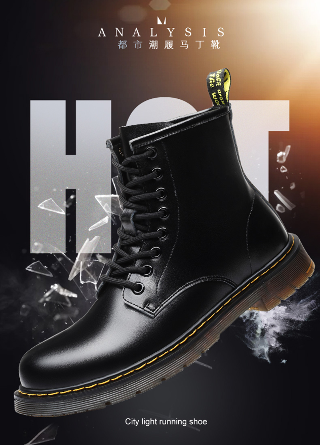 与普通马丁靴的橡胶大底不同,直接上升一个档次,采用透明牛筋大底,缓震耐磨,防滑耐穿。经典8孔系带设计,英伦风高帮款式,轻松驾驭休闲商务等多个场合,百搭穿着。