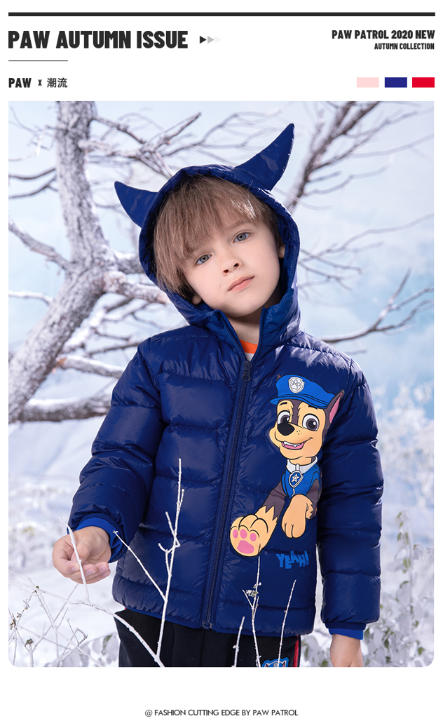 这款Paw Patrol 汪汪队立大功 儿童立体耳朵连帽轻薄羽绒服,轻薄羽绒,90%白鸭绒填充,保暖舒适;连帽设计,防寒保暖;前幅中开设计,前幅包边,数码印花,简约萌趣;双侧口袋,方便实用,拉链防夹设计,避免不小心伤害宝宝肌肤。