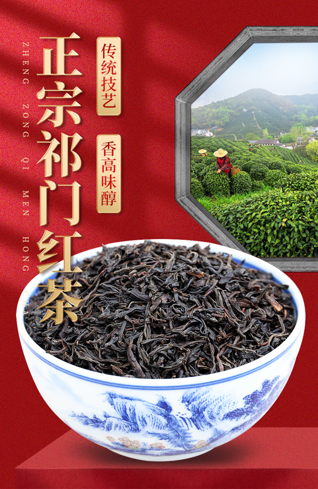 祁门红茶由安徽茶农创制于光绪年间,但史籍记载最早可追溯至唐朝陆羽的茶经。产于安徽省祁门、东至、贵池(今池州市)、石台、黟县,以及江西的浮梁一带。“祁红特绝群芳最,清誉高香不二门。”祁门红茶是红茶中的极品,享有盛誉,是英国女王和王室的至爱饮品,高香美誉,香名远播,美称“群芳最”、“红茶皇后”。
