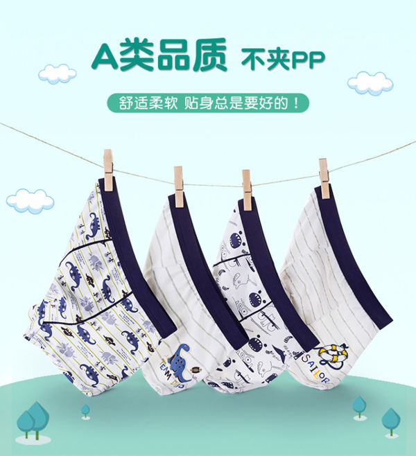 A类棉品质,柔软舒适,不掉色零刺激!平角设计,不卷边不夹小屁屁!高弹力腰头设计,宝宝穿脱方便!成长期宝宝专属,让妈妈放心的小内内。