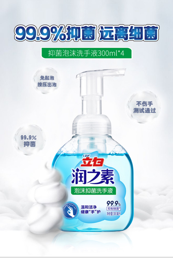 天猫润之素洗护旗舰店33.9元,可领20元优惠券,实付13.9元到手,是正价41.9元的3.3折;免搓按压出泡,泡沫细腻温和不伤手,权威机构检测认证抑菌率99.9%,全家适用领券链接点此