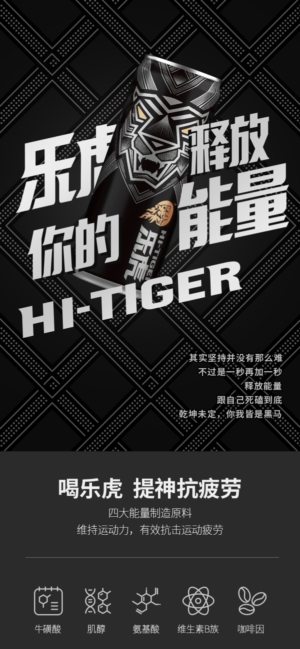 乐虎氨基酸维生素功能饮料,主要成份有牛磺酸、肌醇、氨基酸、维生素B6、B12等人体重要的能量制造原料,能起到迅速提神的作用,保持头脑清醒,有效驱除因长时间工作出现的精神困乏状态,同时可维持运动能力,有效抗击运动疲劳。