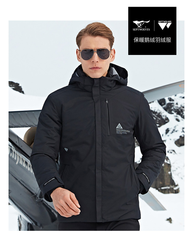 面料采用防泼水加贴膜处理,达到防风防泼水效果,同时保持衣服干爽舒适,兼顾耐磨性,舒适耐穿。合体修身版型,穿着不臃肿。多层面料结构,有效防风防钻绒。