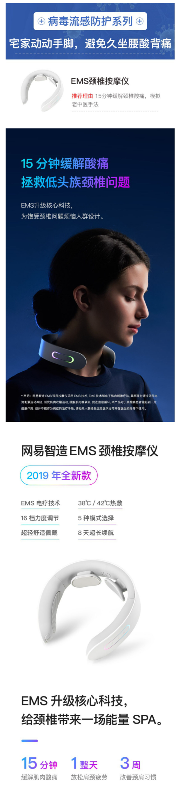 天猫网易严选旗舰店,16-18日 天猫燃冬季,¥289元 燃冬价,-100元优惠券,=189元 到手价,低频脉冲多功能按摩仪,模拟老中医手法,针灸/推拿/敲打/刮痧,让颈部肌肉瞬间放松下来,具备恒温热敷功能,就像热毛巾触感一样,加速血液循环。5种按摩手法,16档强度调节,深层缓解肩颈不适,舒畅筋骨。仅160g重量,超轻佩戴,具备语音播报功能,老人和孩子也能轻松使用。