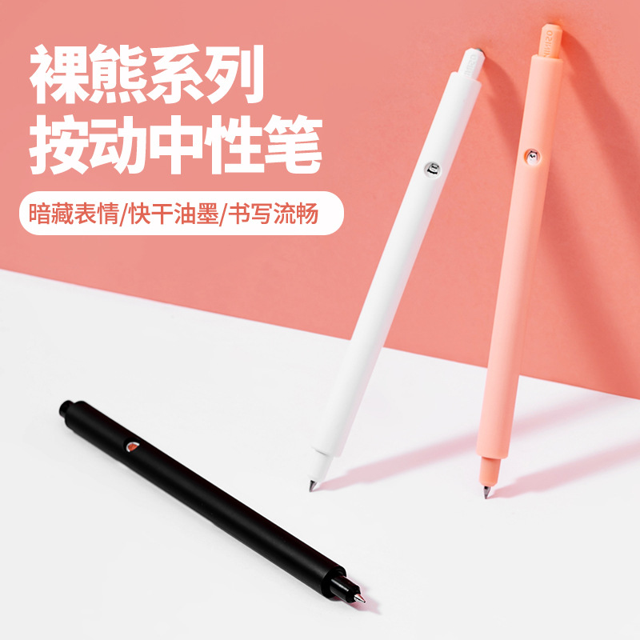 千奕 裸熊系列按动中性笔,此款为裸熊限定联名表情笔,书写线幅为0.5mm,共6支装,有3种笔杆颜色各2支。平平无奇的笔如何玩出新花样?设计师利用按压开关的结构特点,把三只裸熊的表情融入到笔杆中,每次开关都会露出不同表情,表面上是一支中性笔,其实背地里......暗藏裸熊~看!每按一下都有小表情,惊喜的、可爱的、搞怪的,给你的学习和工作带去欢乐;内含快干型油墨,干燥速度快,不易蹭花字迹,字迹整洁持久;书写连贯流畅不易飞白、断墨,捕捉灵感、速写速记,酣畅淋漓体验;采用一体化纯色笔杆设计,触感细腻,约1cm直径,长时间执笔书写舒适,悦目也实用;按动出芯,单手即可操作,无丢失笔帽的烦恼;笔头处的外壳可拆开,方便替换笔芯,遇水不易晕开、褪色,适合签字、答题、做笔记等,有需要的买买可以多多收藏关注~