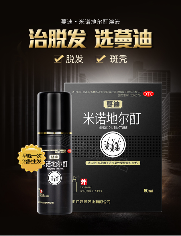 这款是国药准字OTC非处方药,是市面上真实有效的生发药用品,成份为米诺地尔,是一种周围血管舒张药,局部长期使用时,可刺激男性型脱发和斑秃患者的毛发生长。适用于男性雄激素源性脱发、女性雄激素源性脱发、斑秃患者。