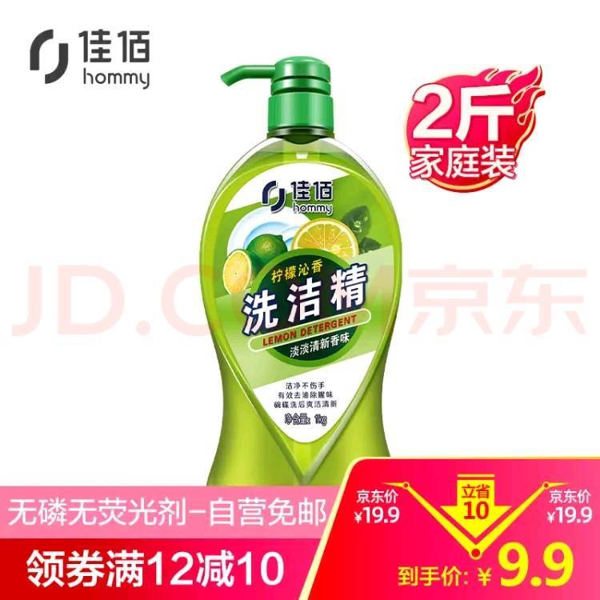 佳佰柠檬沁香洗洁精,无磷配方,无荧光剂,清洁油污,多效清洁。