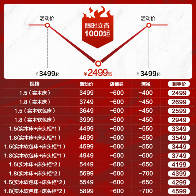 天猫8H旗舰店活动价3499元,使用800元优惠券+400元跨店满减后到手价是2299元包邮,性价比十分不错,正在挑选实木床的朋友可以关注~
