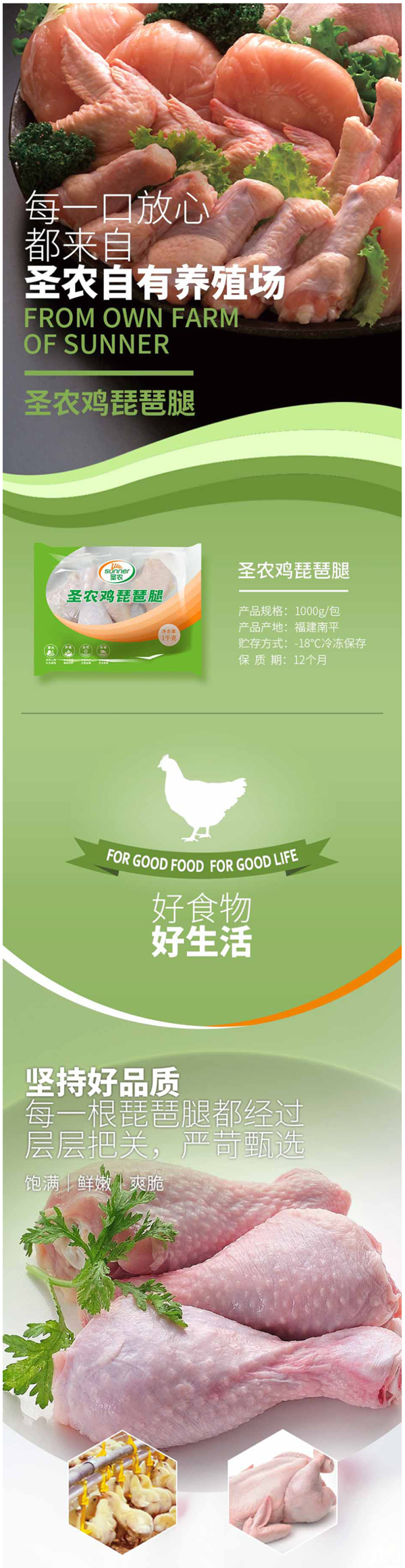 这款圣农 冷冻琵琶腿,产自武夷山下圣农生态农场上等白羽肉鸡,纯谷物饲养出,自繁自养自宰安全可控,口感鲜嫩多汁、不干不柴。