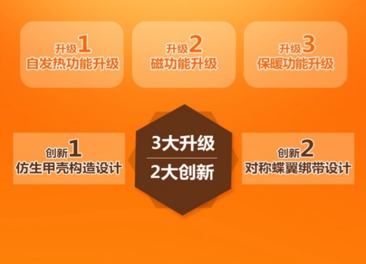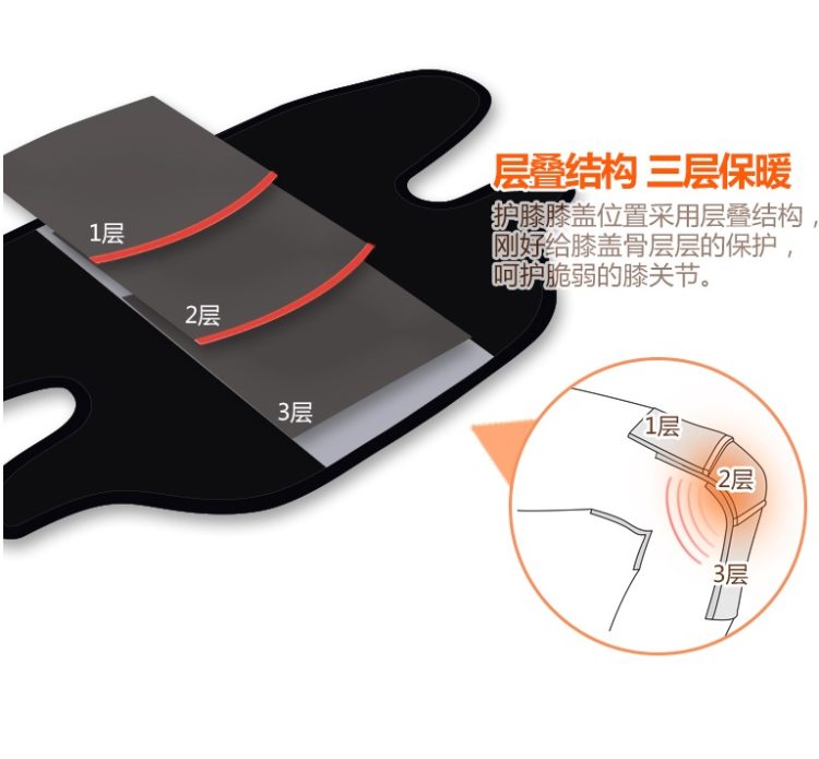 仿生甲壳款,则采用仿生甲壳弯曲原理,膝关节保护面采用层叠结构,可以随着膝盖弯曲而拉长,提高了佩戴的舒适性。纳米红外微粒通过热印刷技术直接印刷在护具表面,使用时间更长,保健效果好。