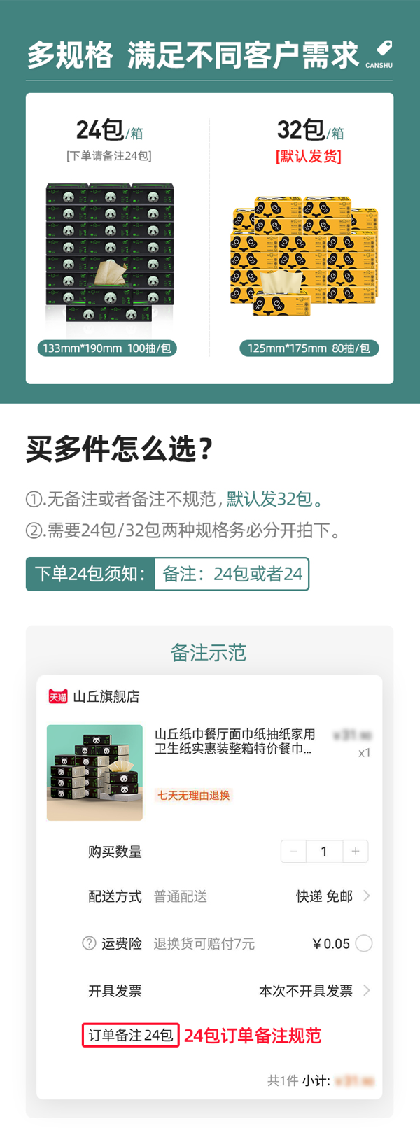 PS:如果想要购买24包款,需要备注“24包”,不然发的是32包款。