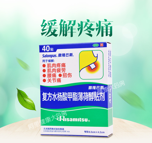 这款撒隆巴斯 复方水杨酸甲酯薄荷醇贴剂,日本进口,主要治疗肌肉疲劳和疼痛、腰酸背痛、关节扭伤痛,以及跌打风湿引起的各种疼痛等,效力能持续24小时,有效舒缓肌肉劳损及工作引起的各种痛症。