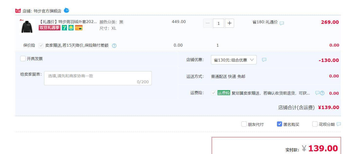 天猫特步官方旗舰店现售价269元,可领取110元优惠券,叠加20元满减,到手价139元,近期低价,喜欢可入。