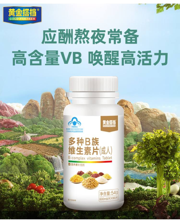 官方旗舰店发售,加班熬夜喝酒?黄金搭档B族维生素片!一瓶90片,科学比例搭配,每天吃一粒,排毒养颜,抗衰老,加速新陈代谢!告别亚健康,唤醒青春高活力!【赠运费险】领券链接点此
