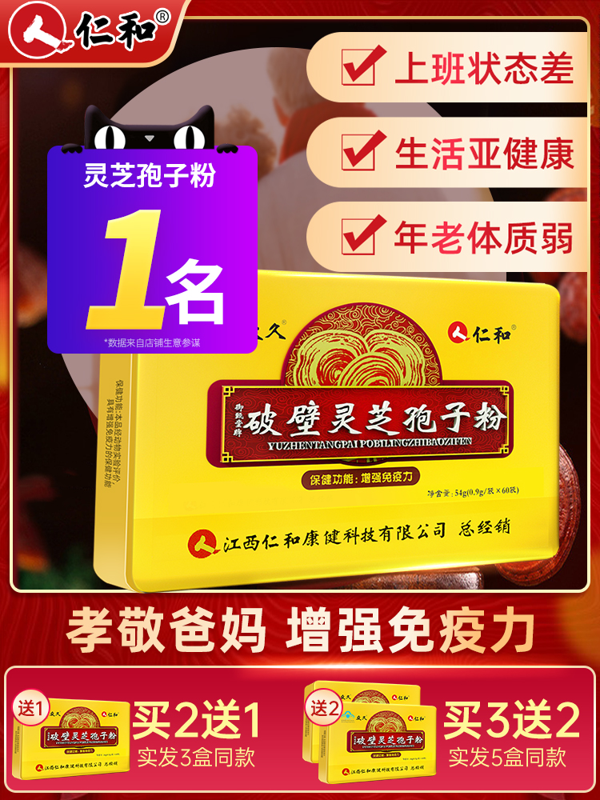 天猫弘德大药房旗舰店188元,可领140元优惠券,实付48元到手,仁和品牌,精选灵芝孢子粉,低温破壁技术,速溶与水,更易吸收,增强免疫力,高档铁盒装,共60小条,送长辈特别有面子