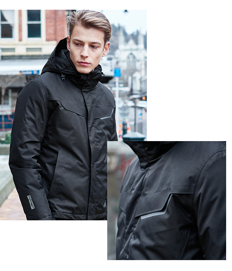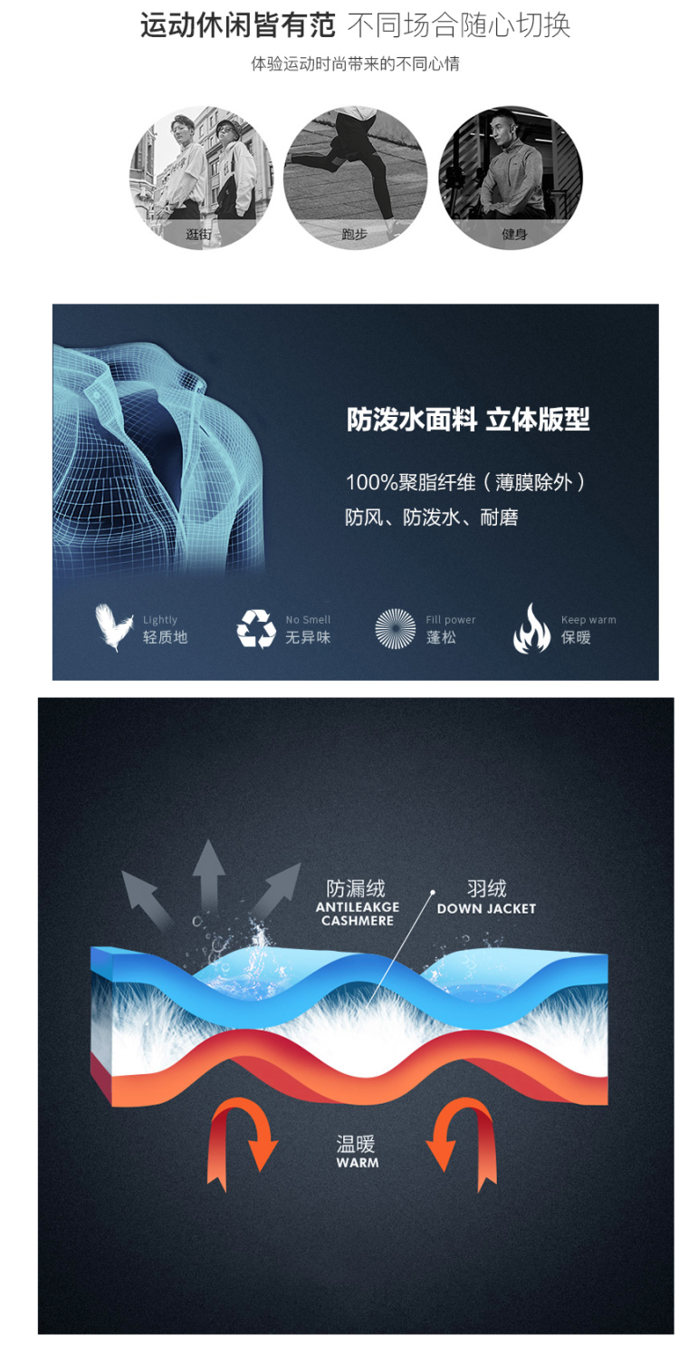 这款七匹狼男羽绒服定位是「机能服装」,属于时装+户外跨界产品。简单来讲,就是使用户外功能面料,加以时尚的造型和剪裁,适合都市日常穿着,也能应对恶劣天气与户外运动,十分符合未来运动通勤的趋势。