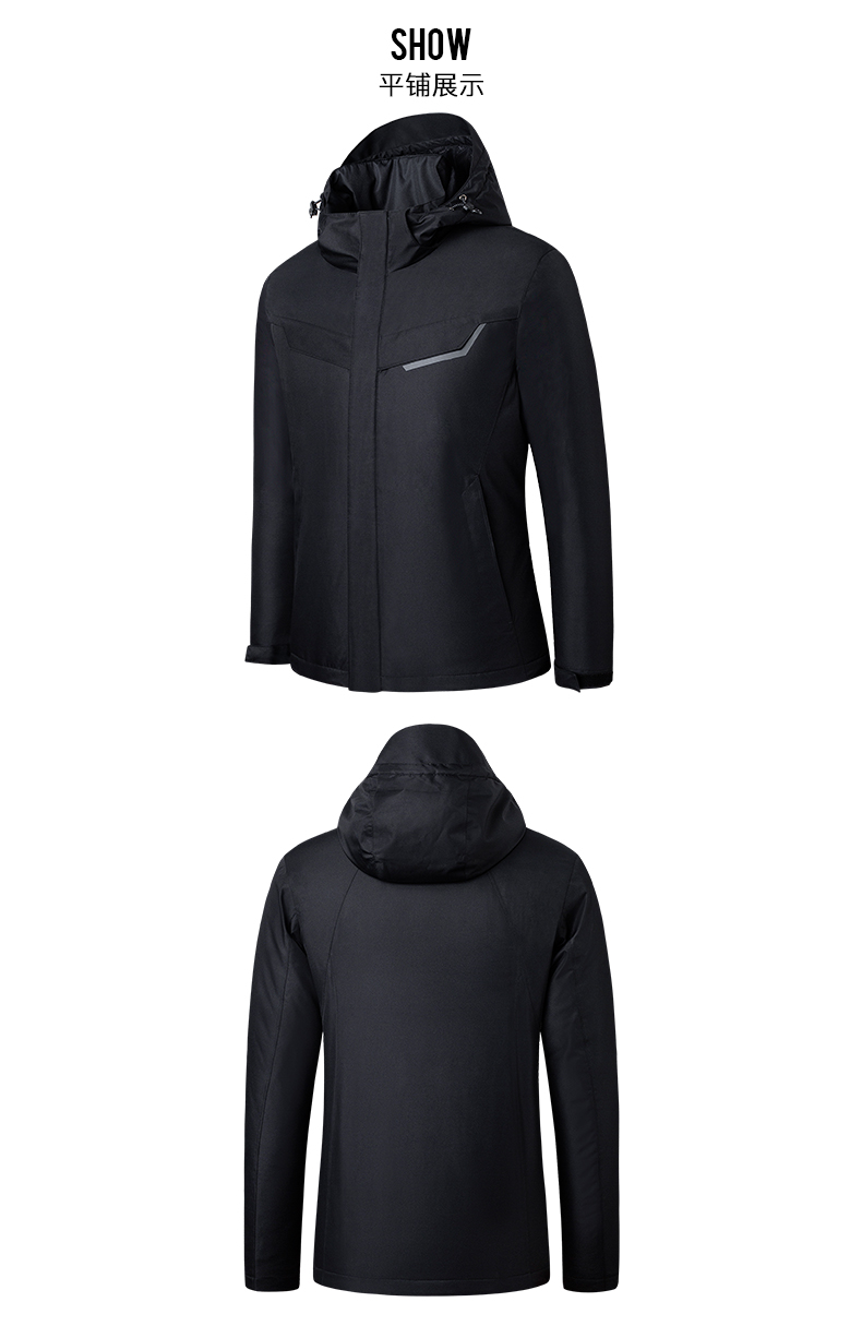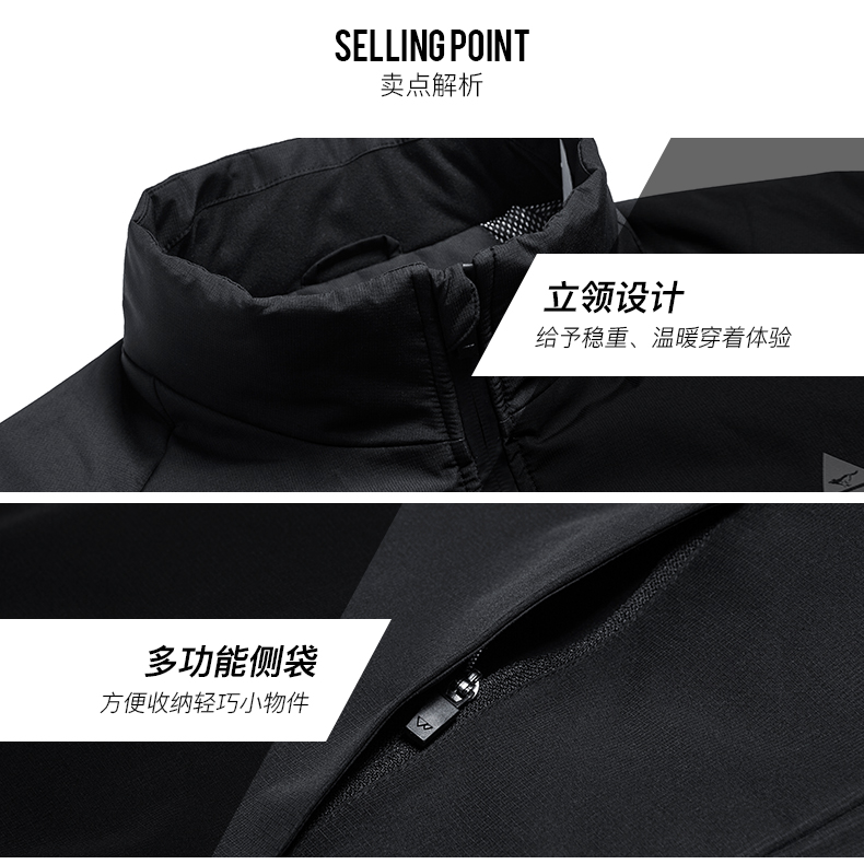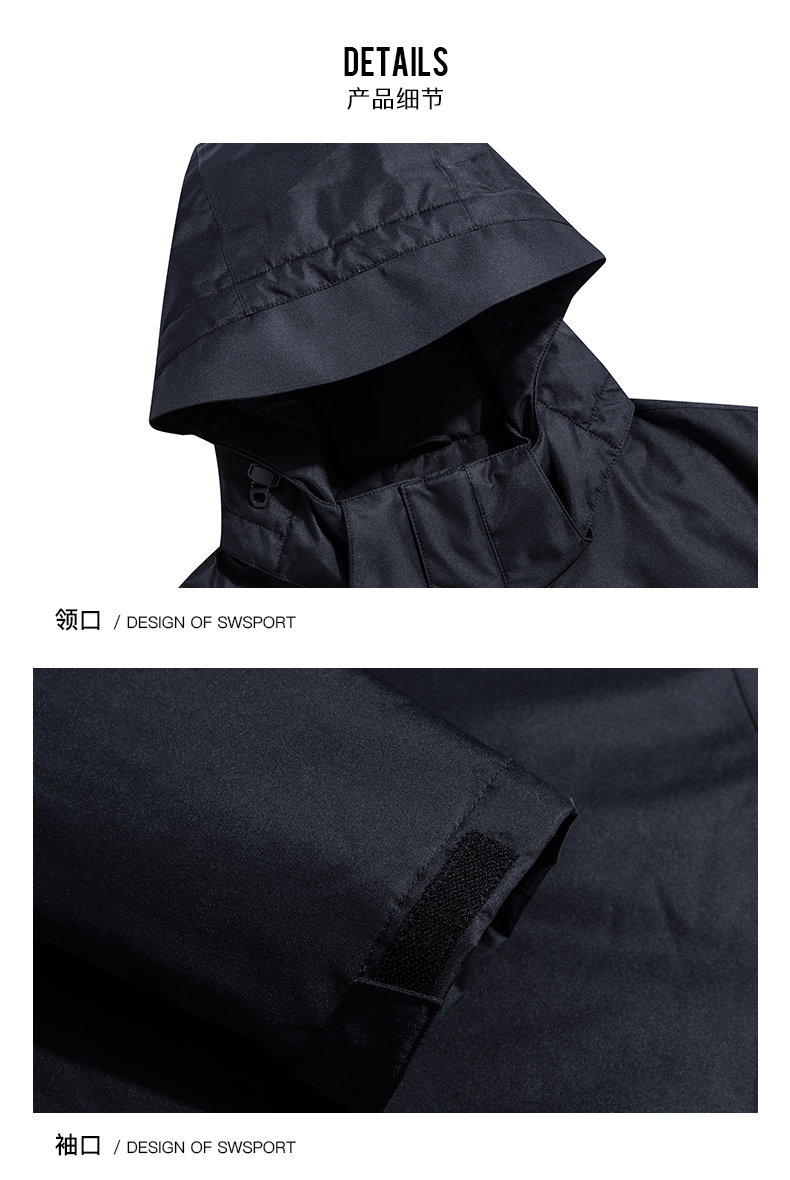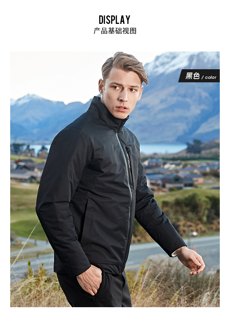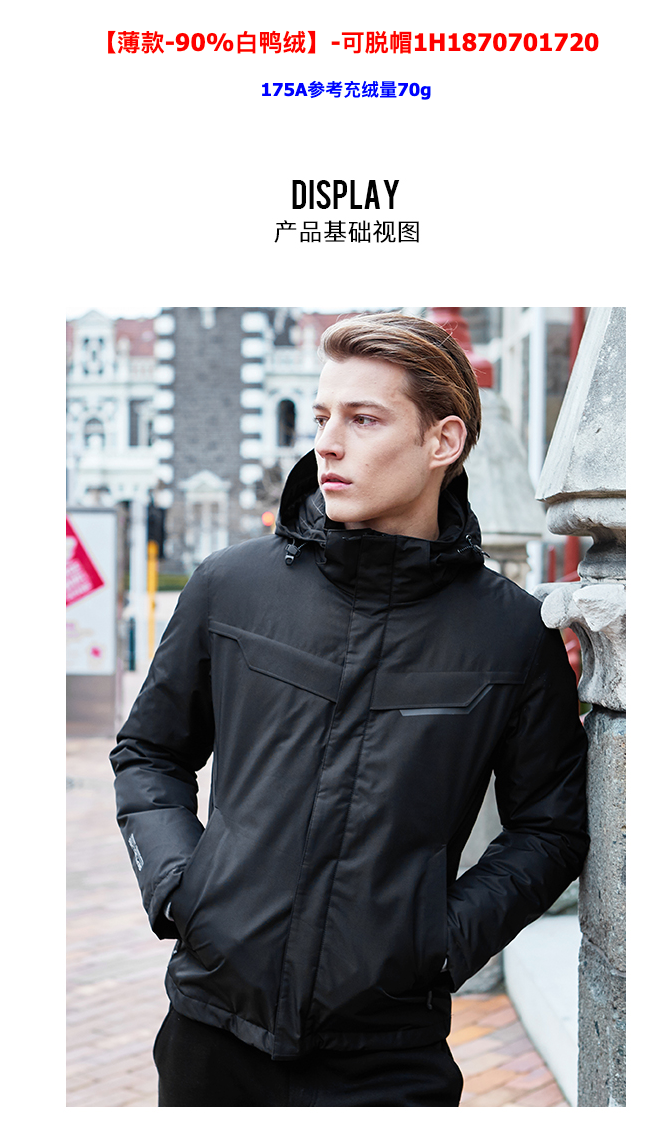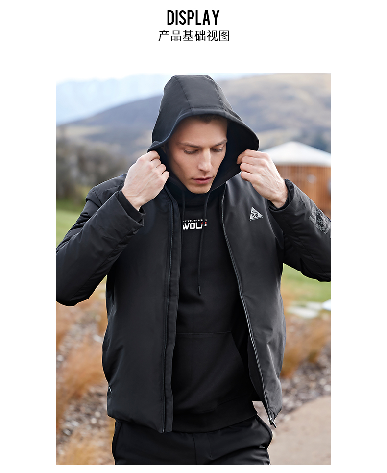 在款式和细节上,3D立体剪裁+合身版型,上身更得体不臃肿。半高领搭配防风帽设计,有调节抽绳,可以把脖子整个围住,帽子不需要时可以拆卸下来,不妨碍。
