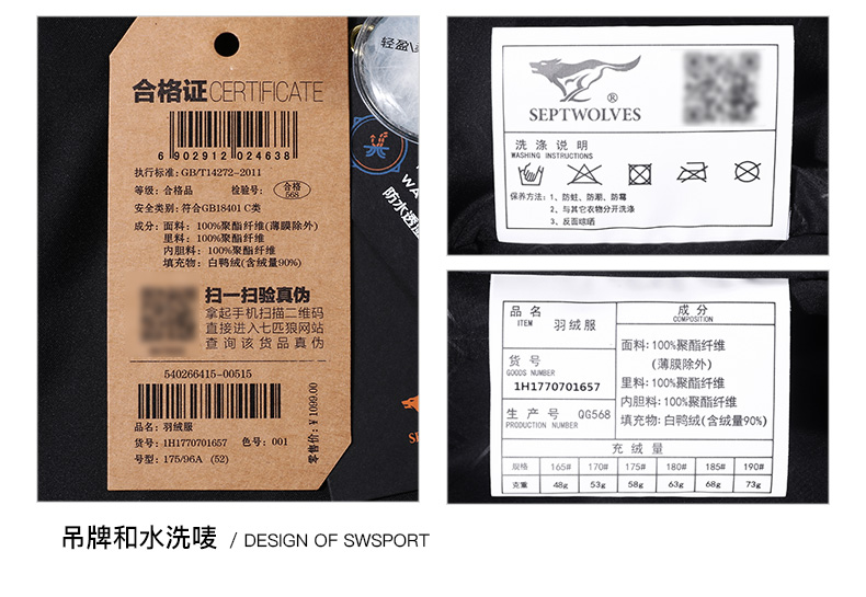 具体充绒量:165码 53g、170码 56.5g、175码 60g、180码 63.5g、185码 67g、190码 70g