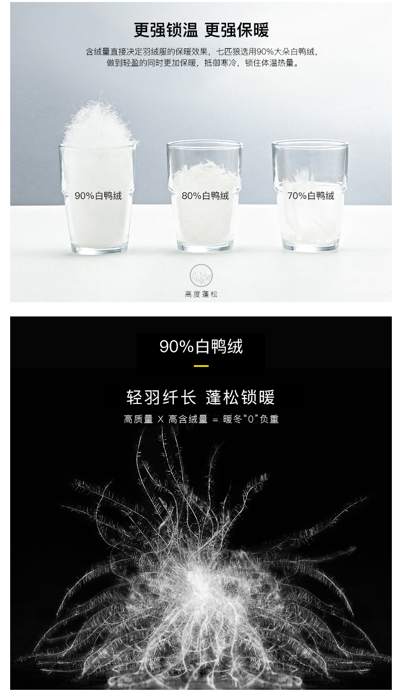具体充绒量:165码 48g、170码 53g、175码 58g、180码 63g、185码 68g、190码 73g