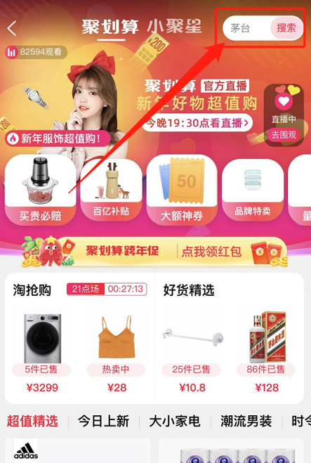 先收藏商品,然后回到淘宝首页进入聚划算页面,然后右上角搜索“夏新耳机”即可领券