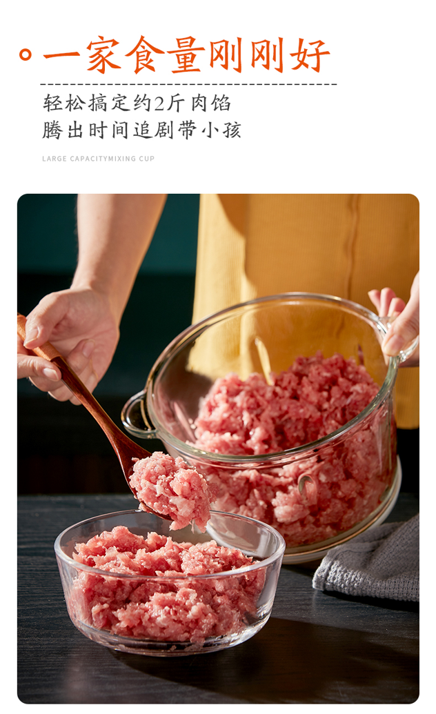 大功率,搭配四叶不锈钢刀头,6秒碎食,可绞肉、碎菜、做辅食等,加厚玻璃碗,快慢2档,告别传统剁肉方式,省心省力,远离细菌,家庭实用必备~领券链接点此