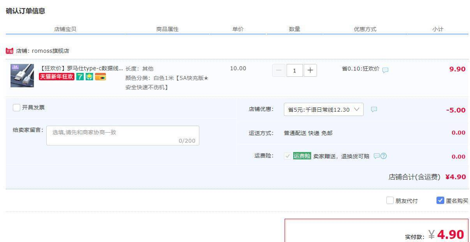 天猫romoss旗舰店目前售价9.9元,可领取5元优惠券,实付4.9元包邮,近期好价,感兴趣的朋友可以入手。