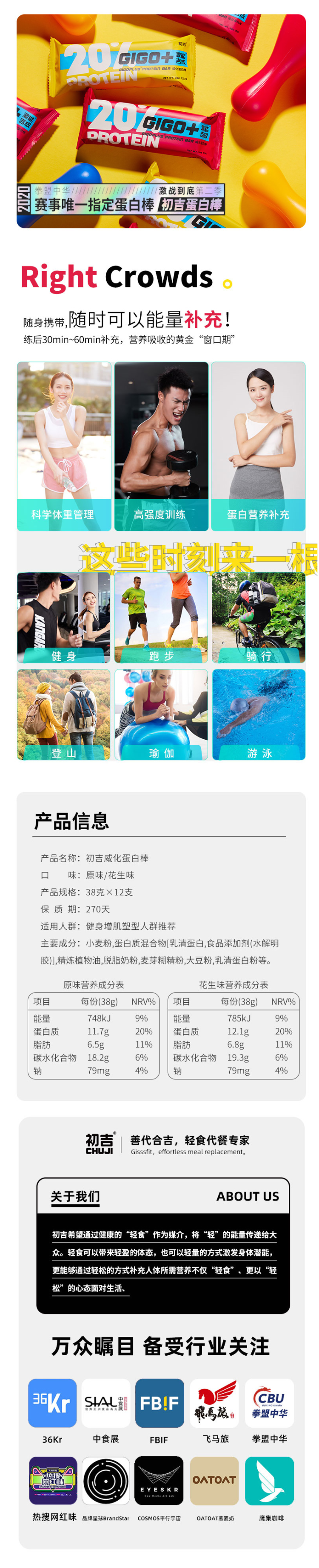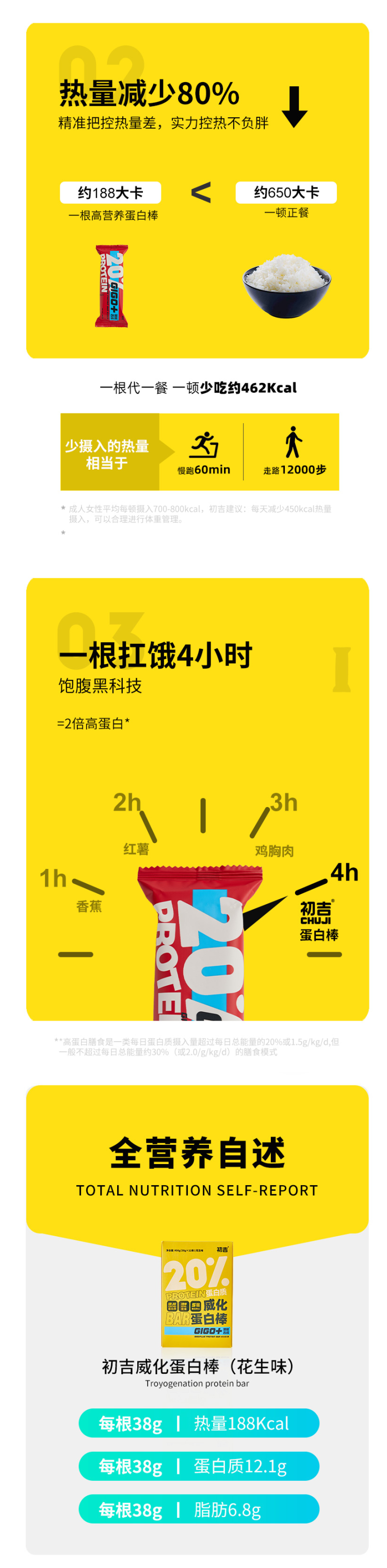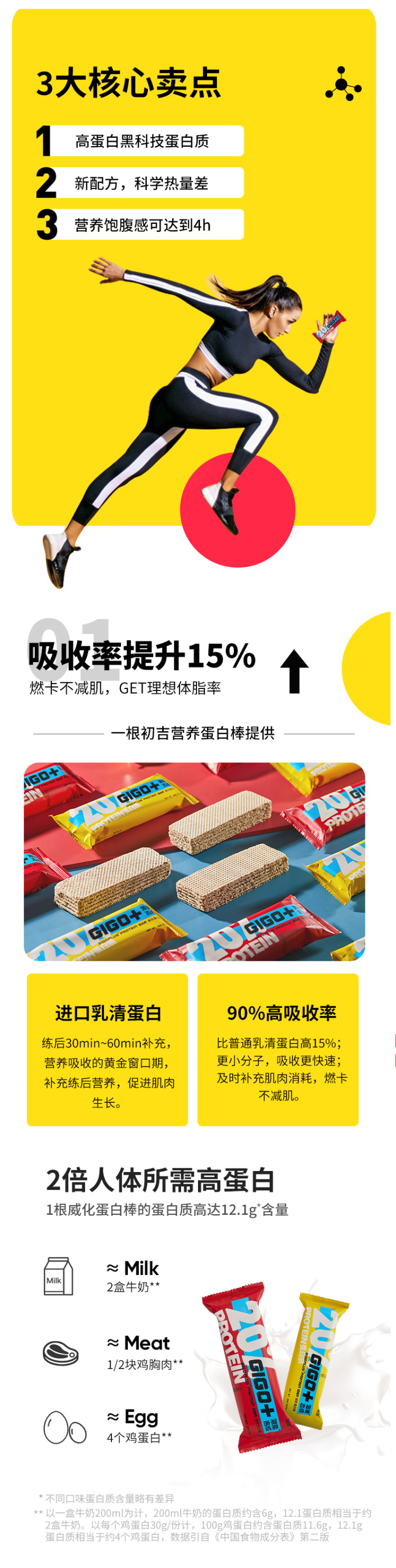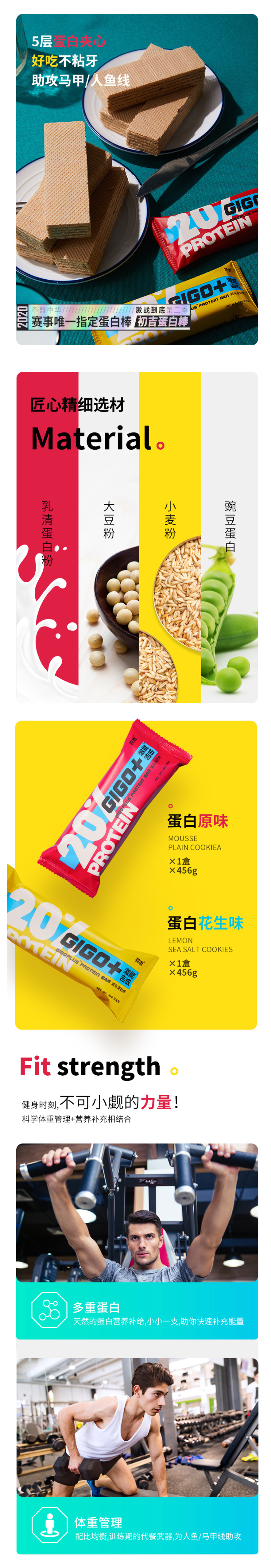 新西兰进口乳清蛋白,无添加蔗糖。5层蛋白夹心,每条蛋白棒蛋白质高达11.7g,相当于4份鸡蛋清,碳水化合物低至18.2g,0反式脂肪,补充能量。一条蛋白棒可饱腹长达3小时,好吃不胖,运动训练后来一根快速补充能量。