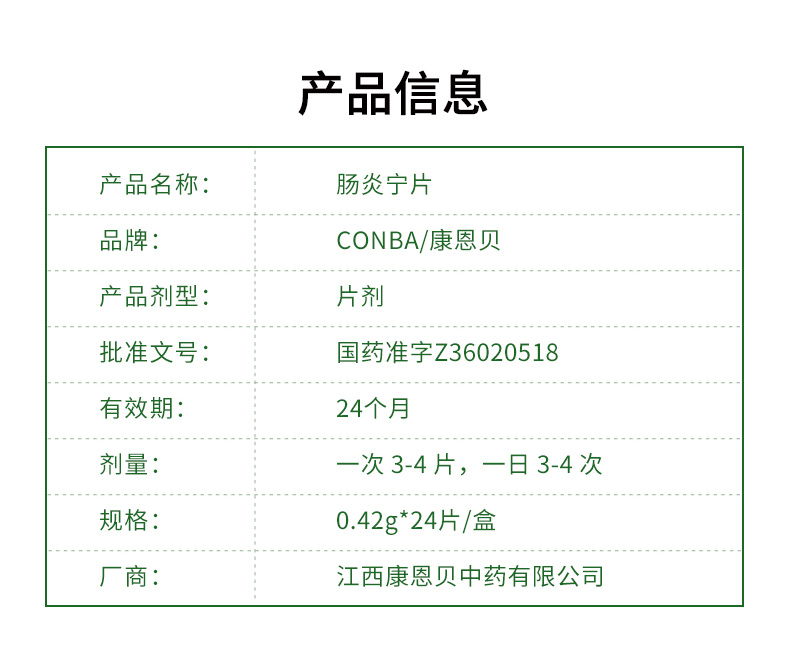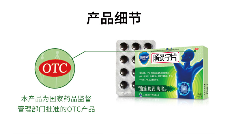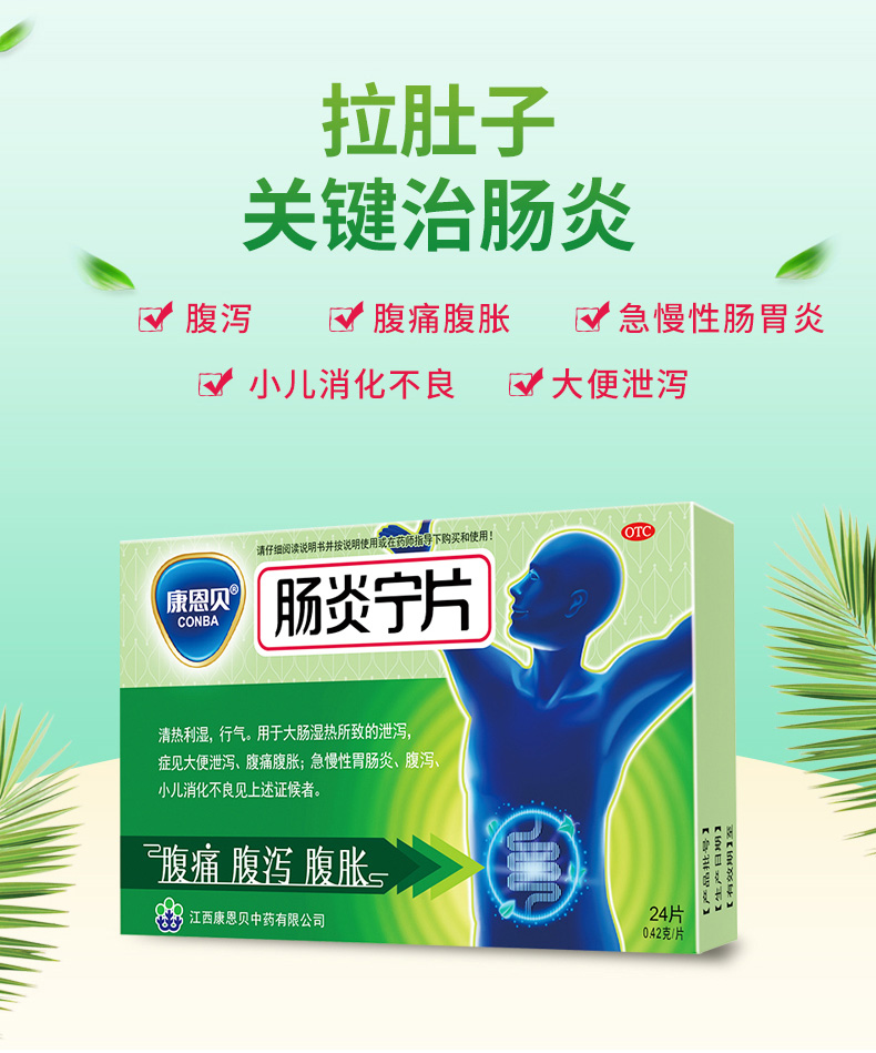 这款康恩贝 肠炎宁片,对腹泻、腹痛腹胀、急慢性肠胃炎、小儿消化不良、大便泄泻等症状有效,清热利湿,吃火锅、烧烤、旅游等都可以备着,规格为24片/盒。