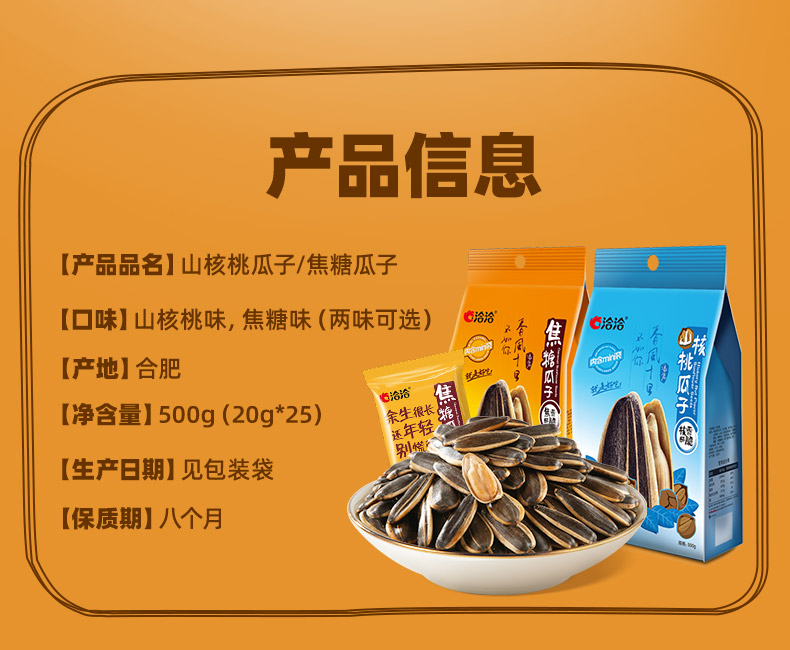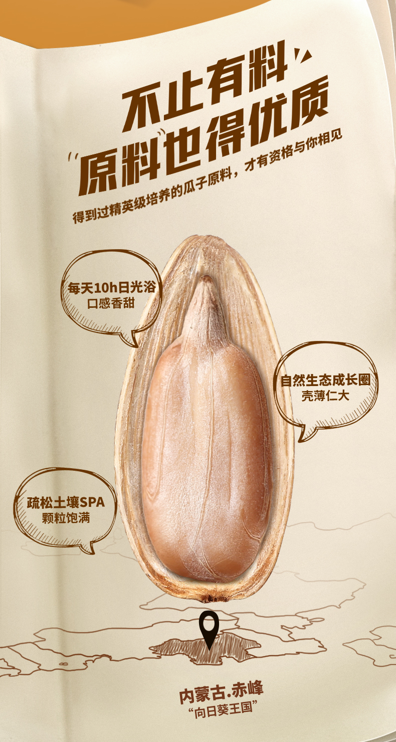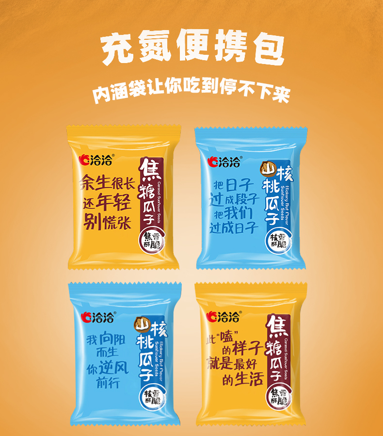 洽洽瓜子山核桃味葵花籽,不止有料,原料也得优质,独立小包装,好吃不上火。