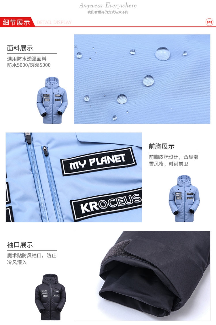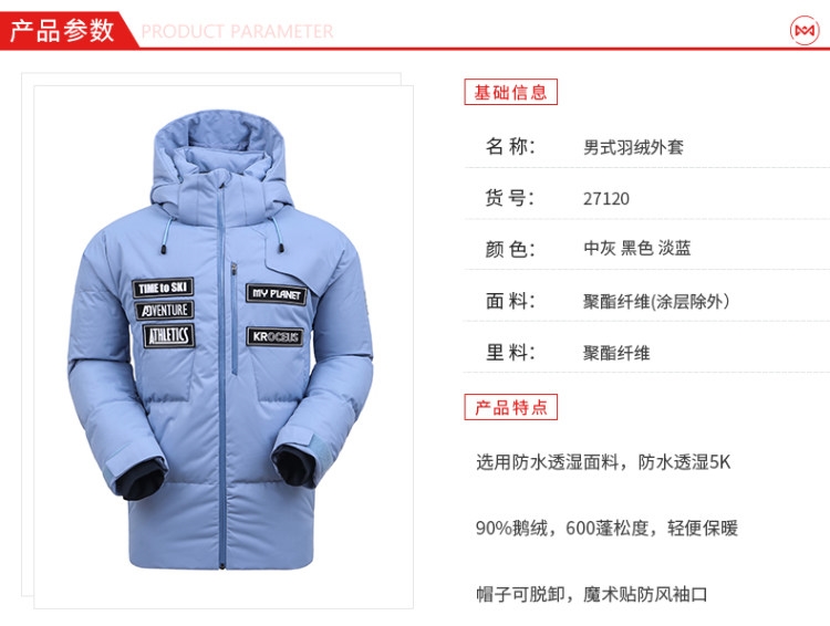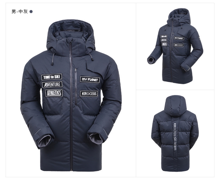 这款羽绒服是地球科学家的旗舰款,为冬季滑雪设计,滑雪服都需要防水,所以外层是防水的冲锋衣面料,男款L码充绒量高达281克,超级厚实保暖。