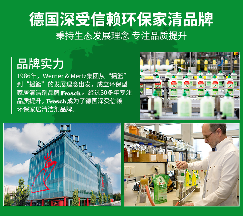 德国WERNER&MERTZ(凡尔纳&梅茨)集团,总部位于德国山清水秀的美因茨小镇,始于1867年,旗下拥有包括 ERDAL、REX、TUBA、EMSAL、TOFIX、RORAX、FROSCH等著名家居清洁剂品牌,几乎囊括了家居清洁养护所需要的全系列产品。