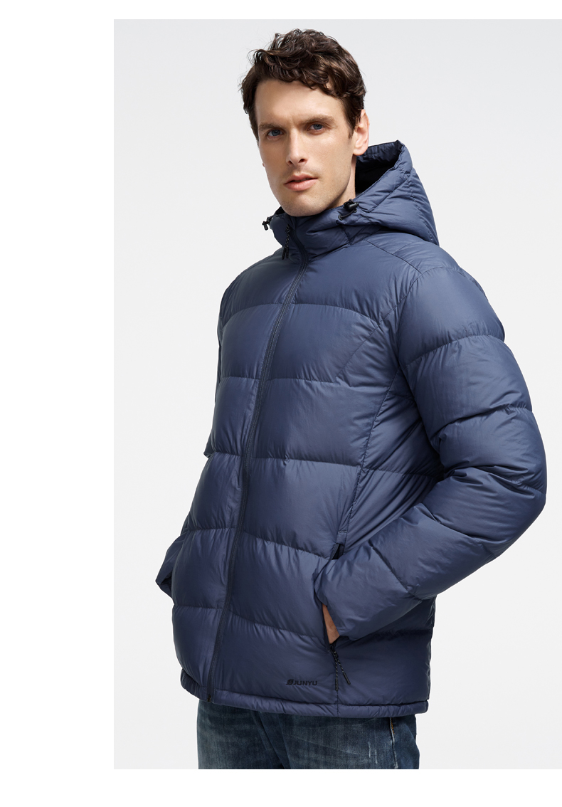 这款君羽羽煦男羽绒服是18年的冬季款,属于君羽的严寒系列,填充800蓬90%的鹅绒,L码充绒量为147克,属于中等厚度,外层是东丽20D高密度尼龙面料,防小雨挡风防漏绒,内置式保暖毛绒保暖立领,适合0℃到-15℃穿着。