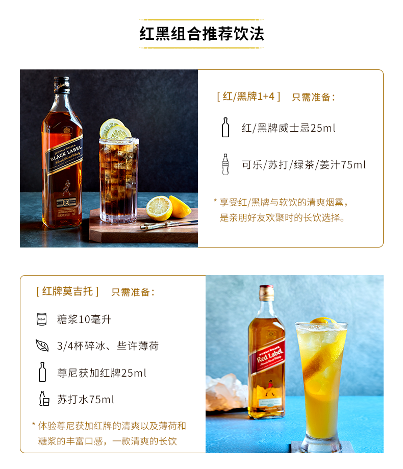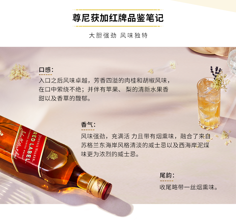 红牌就是大家常说的红方威士忌了,由约35种不同地区的苏格兰威士忌调配而成,浓郁芳香中带有甘甜及烟熏香味。与其他饮料混合饮用时,依然保持其独特的口味特点,所以红方非常适合调酒。