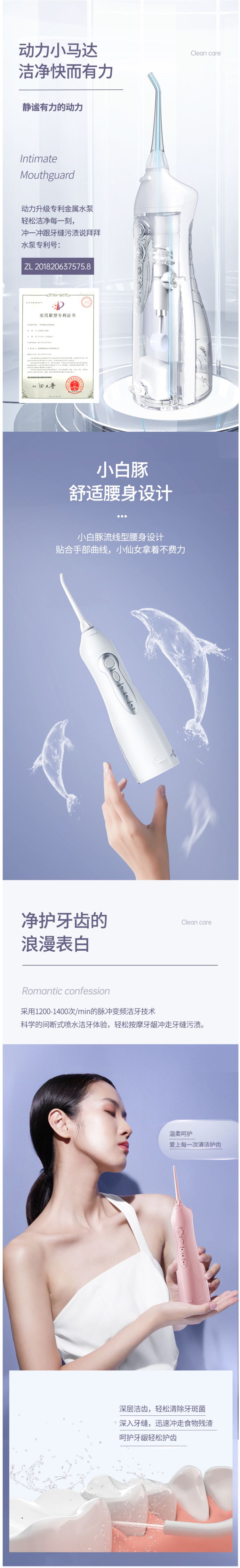 这款博皓5002冲牙器,清洁+护理二合一,使用二代升级金属水泵,水流静谧有力。1200~1400次/min的脉冲变频洁牙技术,能深层洁齿,冲走牙缝内的污渍。
