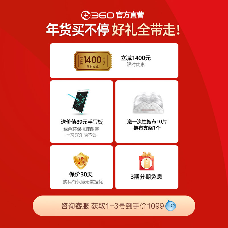 天猫360官方旗舰店参加天猫官方百亿补贴活动,优惠价1049元包邮,如果跳转看不到价格的朋友可以从淘宝APP首页百亿补贴入口进入,百亿补贴界面右上角搜索“360扫地机器人T90”即可看到。近期好价,感兴趣的买买不容错过